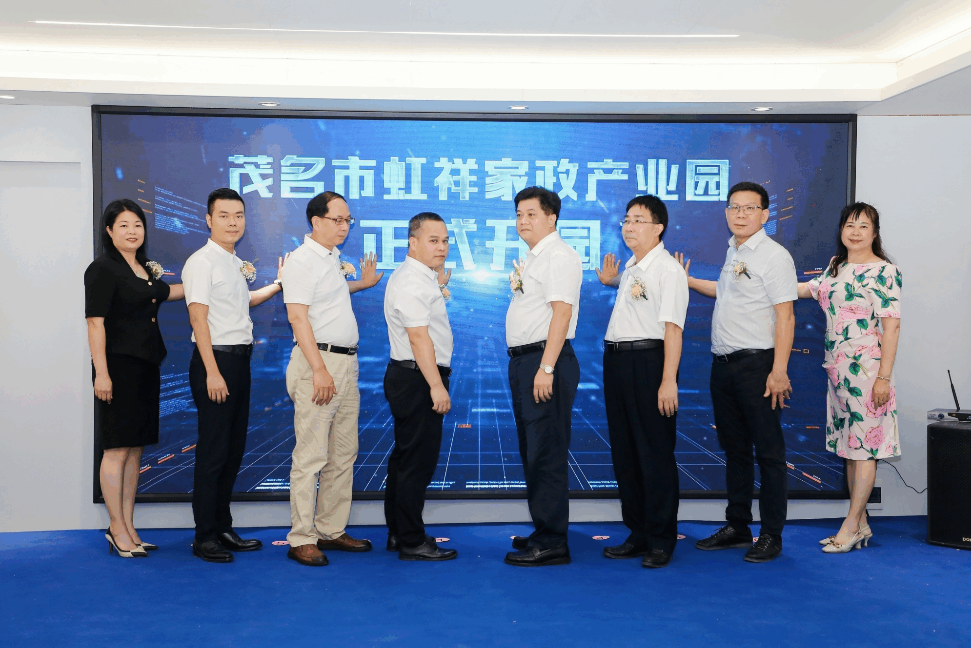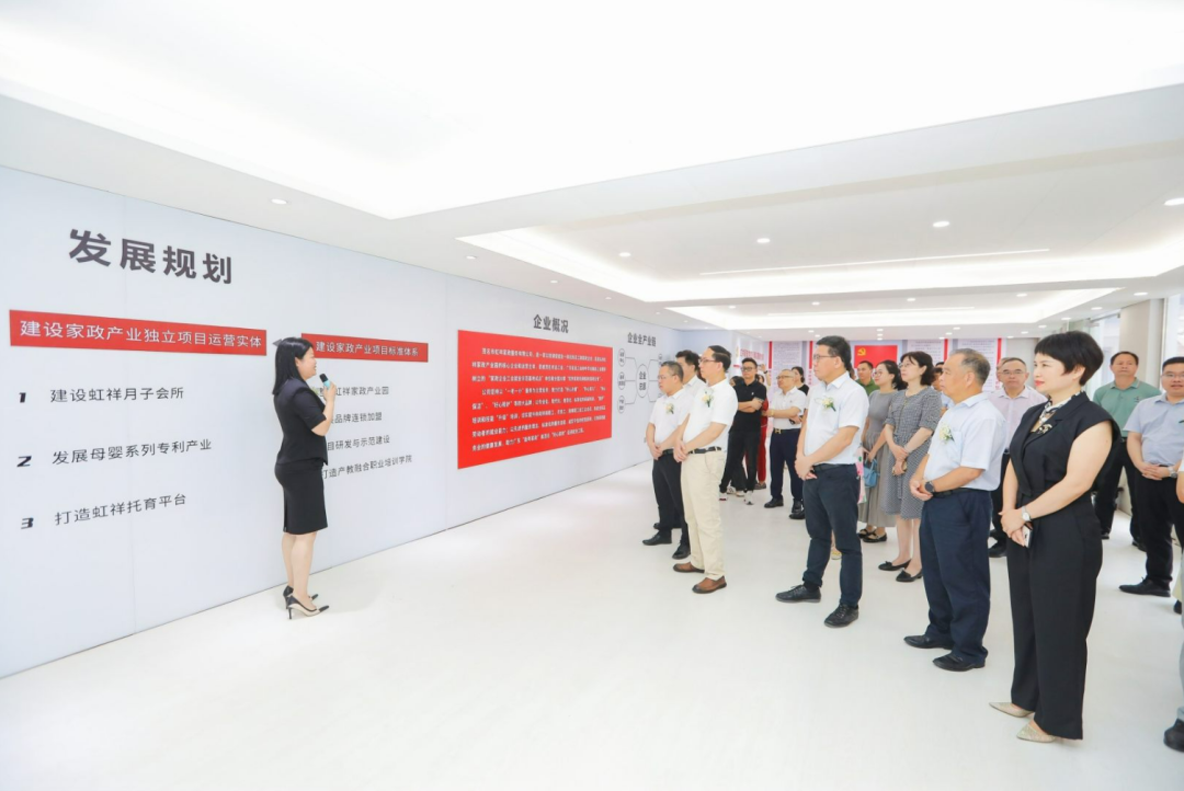 活动现场,与会领导和嘉宾观看了茂名市推进“南粤家政”工程专题片,参观了虹祥家政产业园,并共同为产业园揭牌。